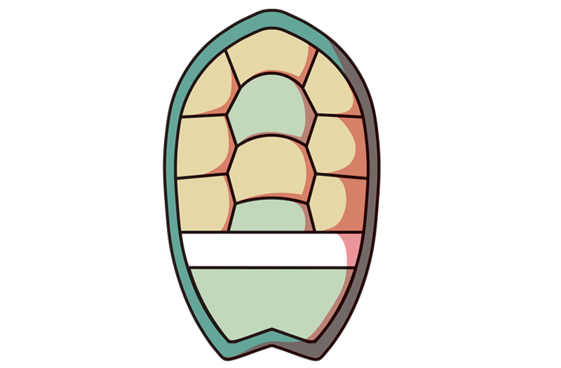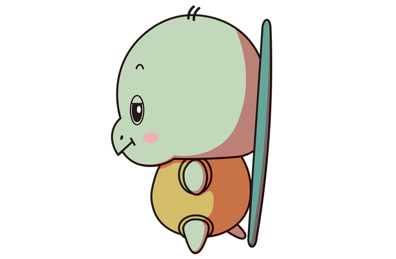 特徴:サーフボードのような甲羅・ウェットスーツを着たような身体